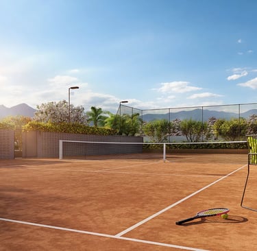 • Lazer completíssimo: pista de cooper, quadra de tênis de saibro, quadra de