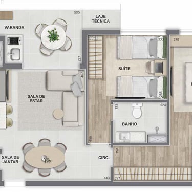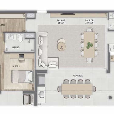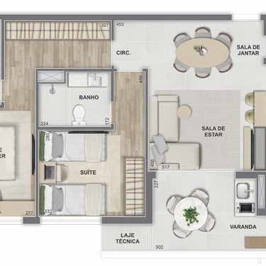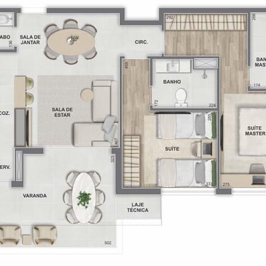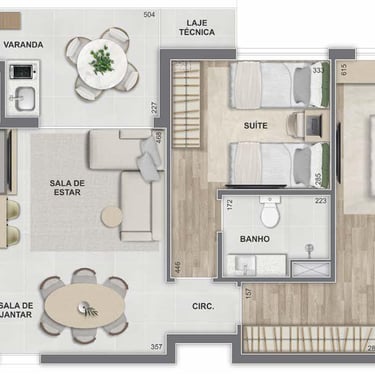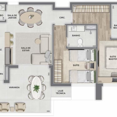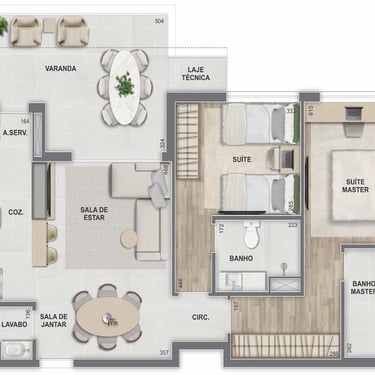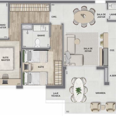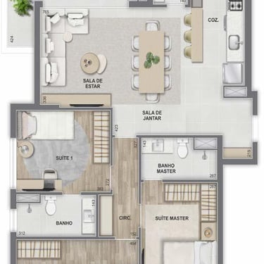 5 aptos tipo com terraço 2 suítes - 80,43m2 a 85,86m2