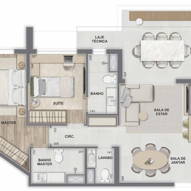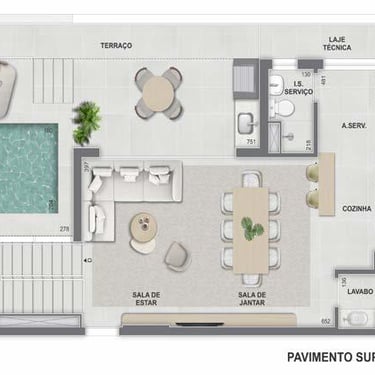 • 01 pavimento de coberturas lineares, pavimento superior da cobertura duplex e lazer