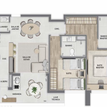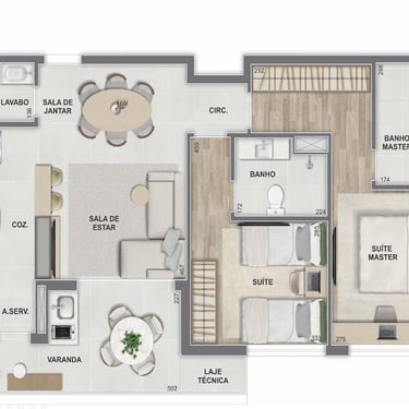 91 apartamentos tipo 2 suítes - 75,68m2 a 79,33m2